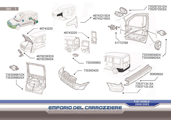 Nella parte inferiore della pagina troverete il dettaglio dei particolari, con i relativi codici, del veicolo Fiat Doblo