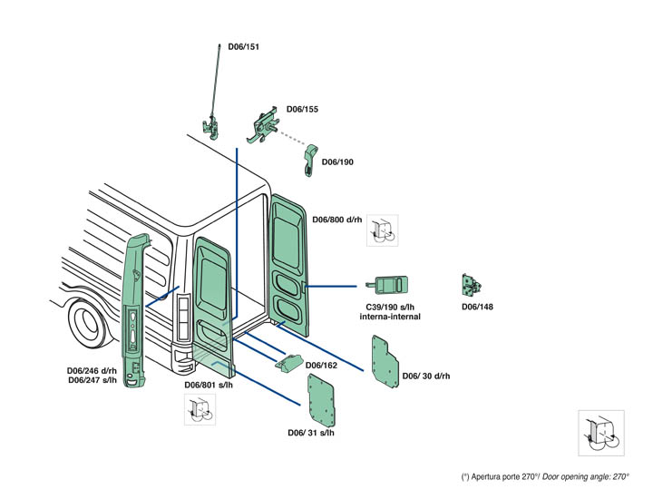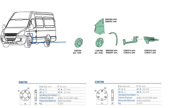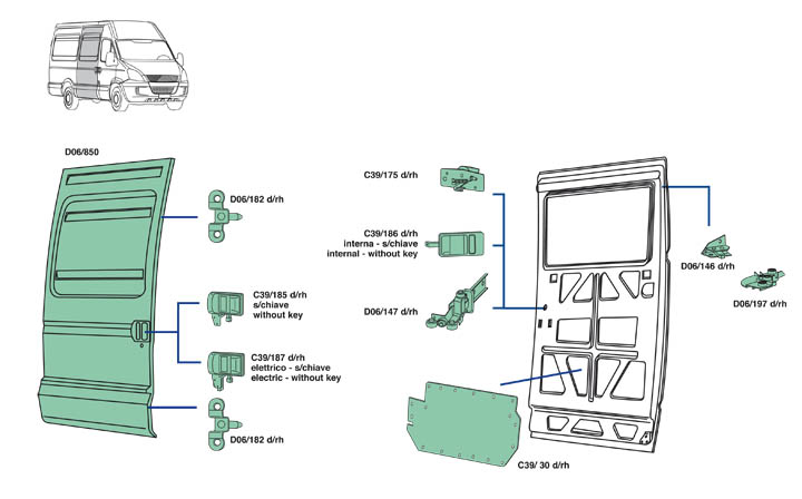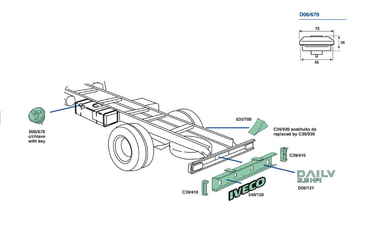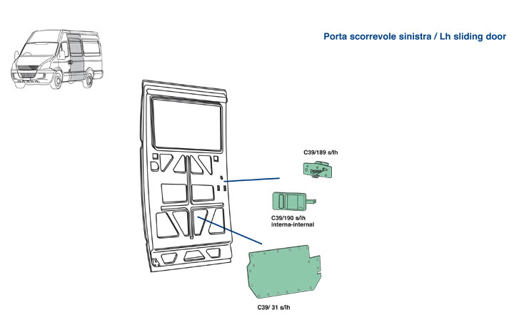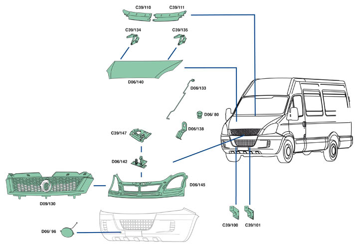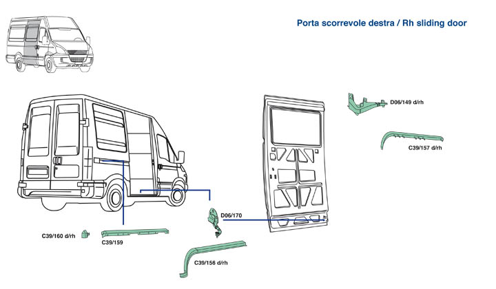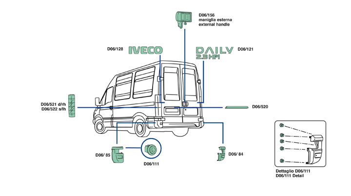 Nella parte inferiore della pagina troverete il dettaglio dei particolari, con i relativi codici, del veicolo Iveco Daily dal 2009