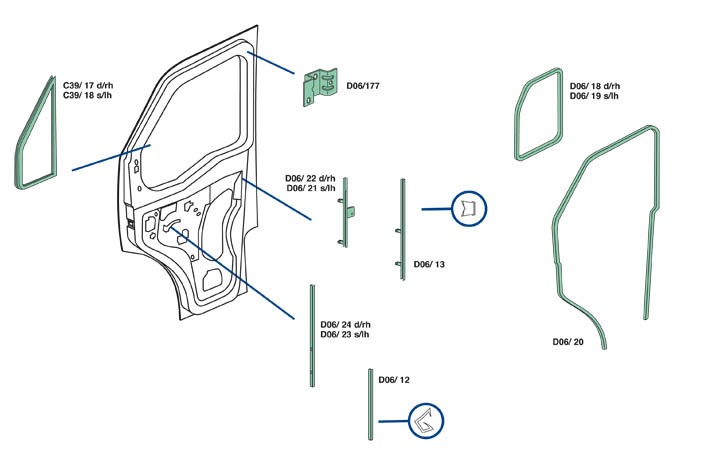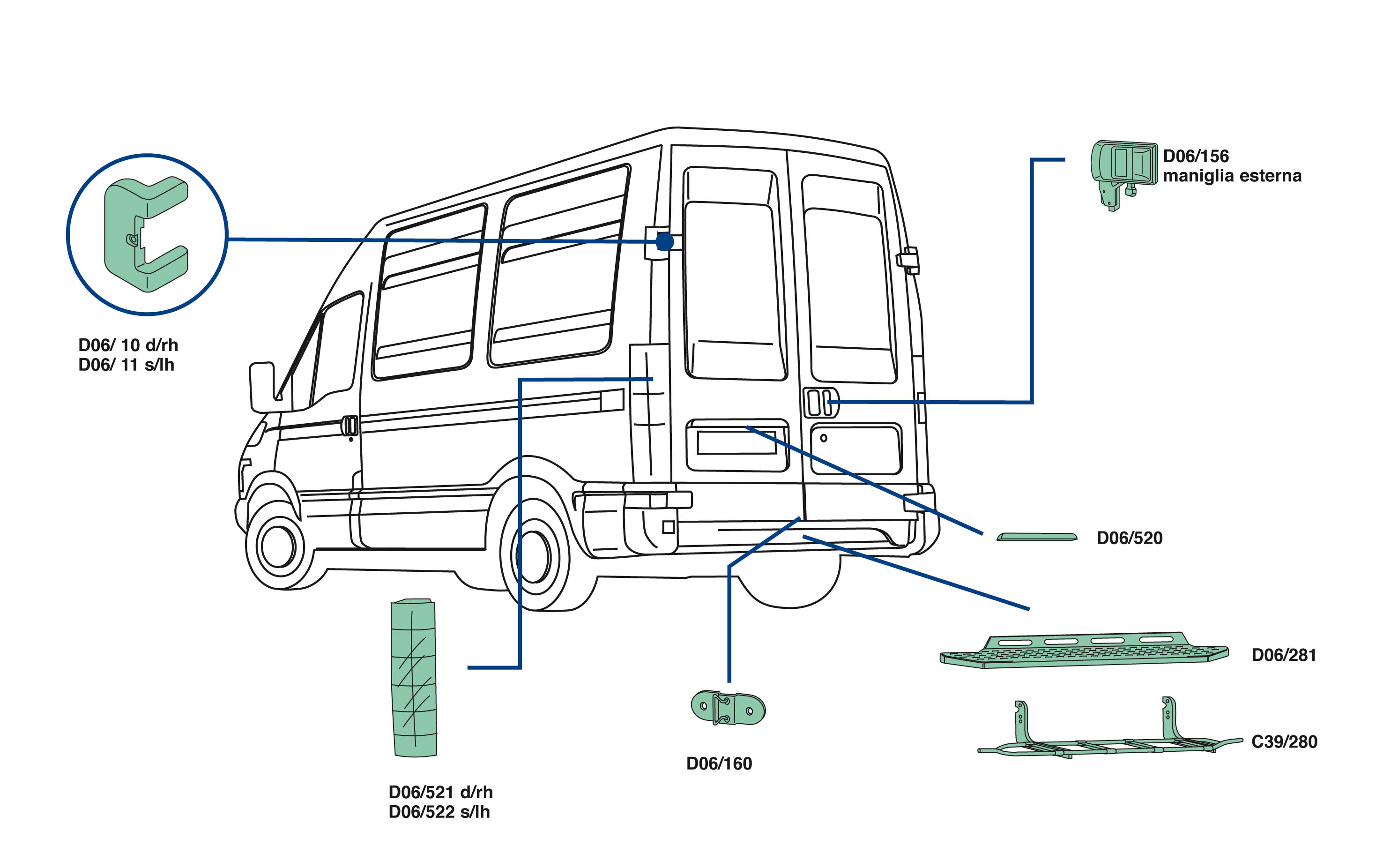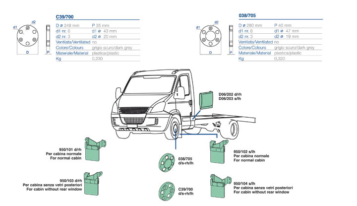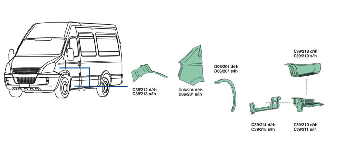 Nella parte inferiore della pagina troverete il dettaglio dei particolari, con i relativi codici, del veicolo Iveco Daily dal 2006