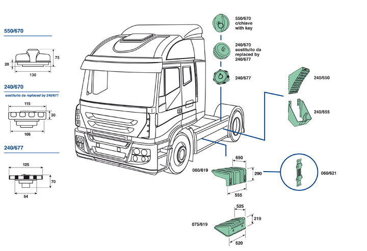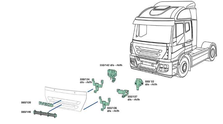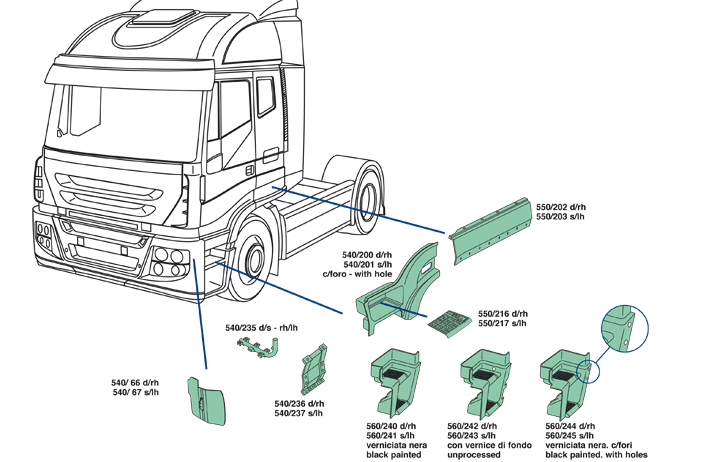 Nella parte inferiore della pagina troverete il dettaglio dei particolari, con i relativi codici, del veicolo Stralis Active Day Iveco 2007