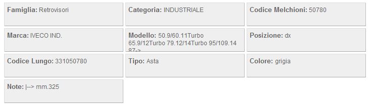 SPECCHIO RETROVISORE IVECO 50.9/60.11Turbo 65.9/12Turbo 79.12/14Turbo 95/109.14 87->