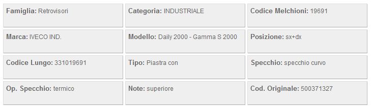 COPPA SPECCHIO RETROVISORE IVECO DAILY 2000 - GAMMA S 2000