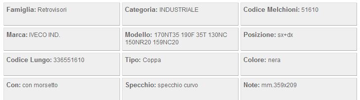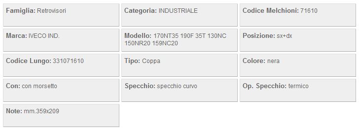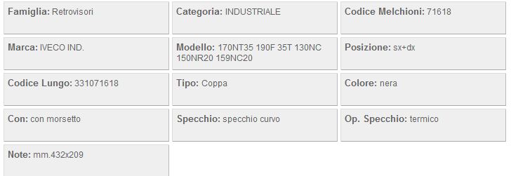 SPECCHIO RETROVISORE IVECO 170NT35 190F 35T 130NC 150NR20 159NC20